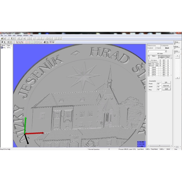 Riadiaci softvér Megaflex SCAPS umožňuje v štandardnom prevedení 2D hlboké gravírovanie a tvorbu (napríklad razníc) pomocou 2D SW s násobným opakovaním gravúry.